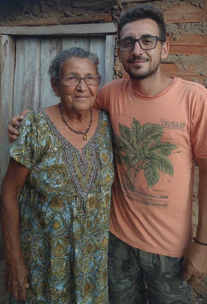 Um dia quando estávamos preparando o que íamos comer no almoço, o Laurindo, que me chama de tia disse: “Ah! tia, faz costela com mandioca”. Concordei. Então o convidei para irmos arrancar a mandioca. Fomos só nós dois.