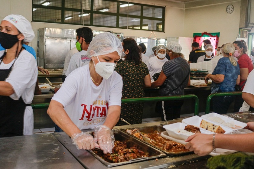 O Restaurante Comunitário do Sol Nascente serviu mais de 3.500 refeições neste sábado (18), durante o almoço especial realizado dentro da programação do Nosso Natal. Lá estavam equipes das secretarias de Turismo, de Saúde, da Pessoa com Deficiência e de Desenvolvimento Social. No comando da equipe de cozinha, o convidado era o chef Marco Espinoza, peruano radicado no Brasil.