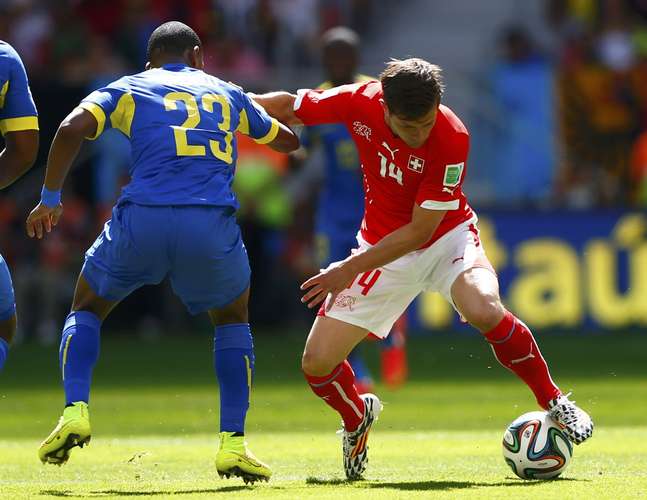 A resposta suíça foi imediata. Após erro na saída de bola, Mehmedi avançou em velocidade e, com três suíços contra apenas um equatoriano, rolou para Shaqiri na ponta esquerda. A bola, porém, ficou longa, e, sem ângulo, o atacante do Bayern de Munique bateu para fora.