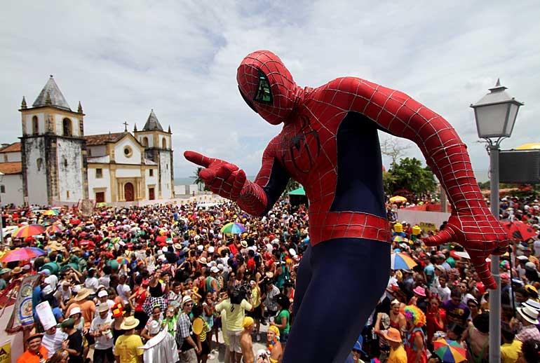E não foram apenas os super-heróis que apareceram em Olinda neste domingo. Os foliões aproveitaram para lembrar acontecimentos marcantes do ano passado e do início deste ano. O que mais se via na cidade eram mosquitos da dengue e alusões à crise. A gafe do concurso Miss Universo de 2015 – que teve a miss Colômbia coroada por engano e logo depois destronada pela campeã efetiva – também foi copiada, e com direito à encenação.