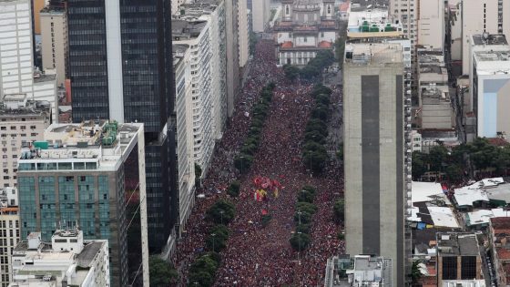 Os jogadores do Flamengo chegaram ao centro do Rio de Janeiro às 12h30 deste domingo, dando início à festa de consagração pelo título da Taça Libertadores...