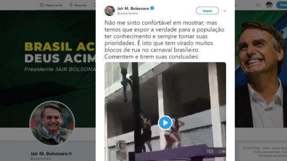 O presidente Jair Bolsonaro publicou no Twitter um vídeo com cenas obscenas que teriam ocorrido durante a passagem de um bloco de carnaval, que ele mesmo...