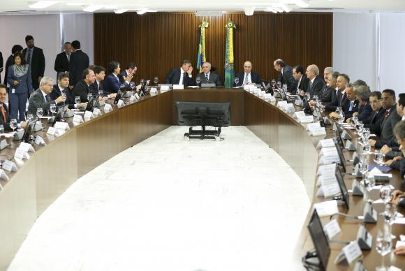 A PEC foi apresentada pelo presidente interino Michel Temer e pelo ministro da Fazenda, Henrique Meirelles, nesta manhã, a cerca de 30 parlamentares da base aliada do governo na Câmara dos Deputados e no Senado. Estavam presentes também o ministro interino do Planejamento, Dyogo Henrique Oliveira, e os ministros da Casa Civil, Eliseu Padilha, e da Secretaria de Governo, Geddel Vieira Lima.