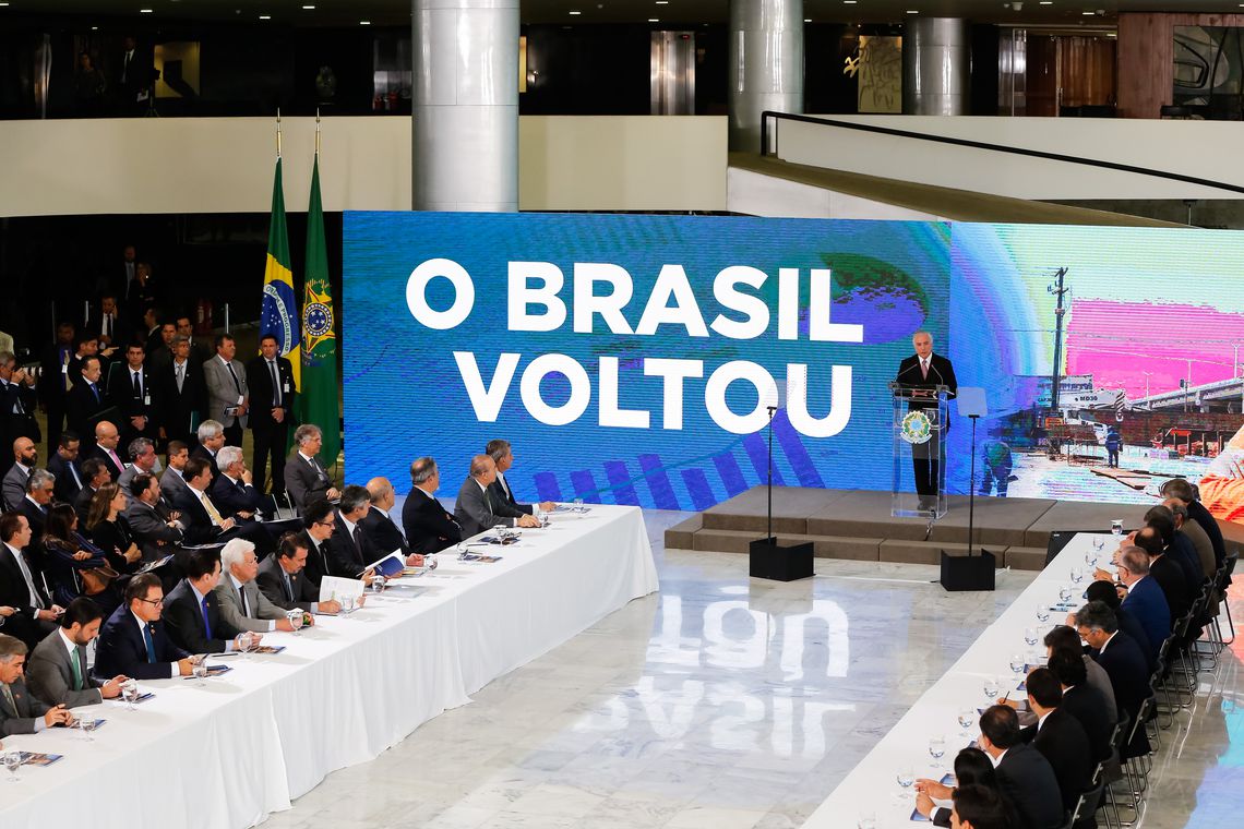 Temer citou ainda que o Brasil teve nos últimos anos os dois maiores superávits na história balança comercial. “O aumento das exportações e também das importações é um sinal claro da recuperação da nossa economia”, afirmou, ao citar os avanços do acordo do Mercosul com a União Europeia, além de tratativa com outros países, como Canadá e Singapura.