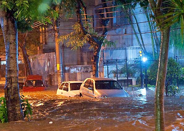 Um forte temporal causou o transbordamento do Rio Maracanã, na Tijuca, zona norte do Rio, no início da noite deste domingo. As chuvas causaram a interrupção por 50 minutos do jogo Flamengo e Vasco, no Maracanã, que ficou com o gramado completamente alagado. Diversas ruas da região, além de bairros da Zona Sul, ficaram alagadas, causando interdições no trânsito.De acordo com o Centro de Operações Rio (COR), a cidade entrou em Estágio de Atenção desde às 17h23, devido à “atuação de áreas de instabilidades, associadas à passagem de uma frente fria no oceano, que atuam sobre parte da cidade ocasionando chuva moderada em alguns pontos”. A prefeitura alertou, também, para a possibilidade de pancadas de chuvas fortes.