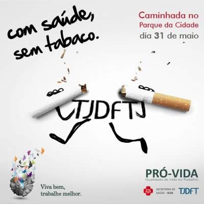Neste domingo, 31 de maio, o TJDFT promove, por meio do PRÓ-VIDA – Programa de Qualidade de Vida no Trabalho, caminhada em comemoração ao “Dia Mundial sem tabaco” em parceria com a Coordenação de Tabagismo da Secretaria de Saúde do DF. O evento acontece às 9h, no estacionamento 13 do Parque da Cidade, conhecido como estacionamento da administração. No local de concentração da caminhada, haverá um professor de tai chi chuan, ações educativas e exames preventivos.