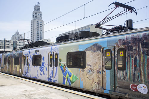 Esse é o segundo trem olímpico que circula pelos trilhos do sistema ferroviário, em uma parceria da Secretaria de Transportes e a Supervia com o programa de cultura Celebra, do Comitê Rio 2016. O primeiro veículo, com trechos de autores nacionais e fotos dos atletas paraolímpicos, foi lançado em setembro.