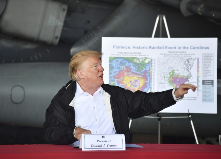 “As inundações são históricas, difíceis de acreditar”, declarou Trump ao se encontrar com socorristas na base militar de Cherry Point, Carolina do Norte, cerca de 30 quilômetros do local onde o furacão tocou terra firme na última sexta-feira.