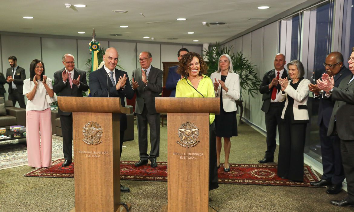 A advogada Edilene Lobo já está sentada em um gabinete do TSE. Ela tomou posse nesta terça-feira (8) como ministra substituta. É a primeira mulher negra a assumir uma cadeira no tribunal. A cerimônia de posse foi breve e presidida por Xandão, presidente da Corte eleitoral.