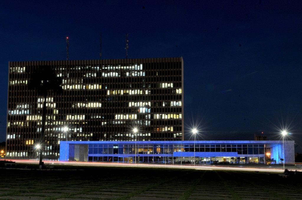 O Palácio do Buriti recebeu iluminação azul, nesta segunda-feira (6), como alerta para a crise hídrica enfrentada pelo Distrito Federal. Desde a semana passada, as regiões administrativas abastecidas pelo reservatório de Santa Maria também entraram no rodízio de fornecimento de água. É possível acompanhar o calendário pelo aplicativo da Companhia de Saneamento Ambiental do DF (Caesb).