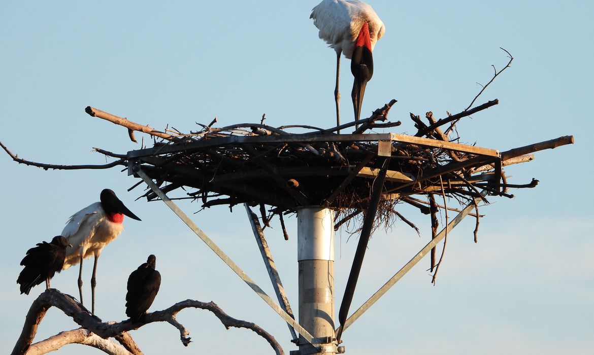 Um tradicional casal de tuiuiús, de Corumbá, em Mato Grosso do Sul, adotou um ninho artificial idealizado pela Empresa Brasileira de Pesquisa Agropecuária (Embrapa). As aves costumavam se reproduzir anualmente em um ninho natural, no que já era uma atração turística da região. Além disso, o ninho era tombado pelo Patrimônio Histórico Natural. Mas ele foi destruído nas queimadas do ano passado. O Tuiuiú é uma ave símbolo do Pantanal, conhecido também como Jabiru.