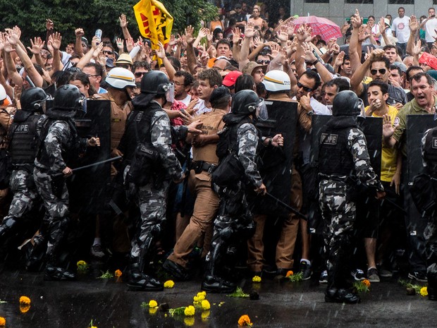 Com a invasão, policiais que isolavam a Alep fizeram o uso de bombas de efeito moral e de balas de borracha. Mesmo assim, os manifestantes seguiram em frente e só começaram a deixar o local quando foi anunciada a retirada do pacote de medidas. O deputado Tadeu Veneri (PT) negociou com os manifestantes a saída dos parlamentares do prédio.