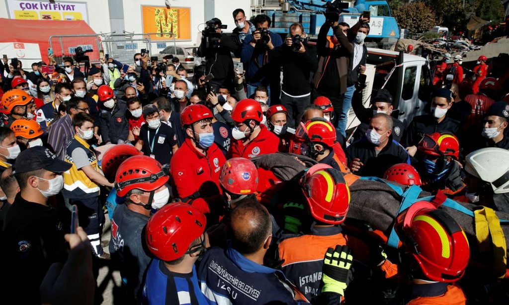 Equipes de resgate turcas continuam em busca de sobreviventes em meio aos escombros. De acordo com Erdogan, em Esmirna, os trabalhos estão concentrados em 17 edifícios, mas há equipes atuando também em outras localidades, como Aydin.