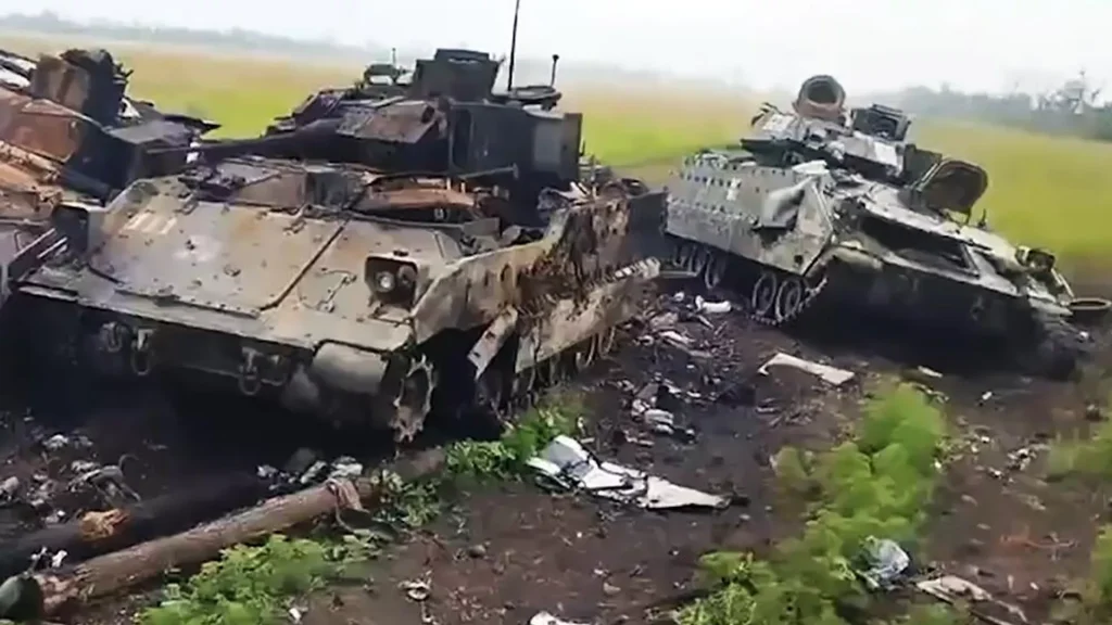 “As perdas da UAF totalizaram mais de 300 soldados ucranianos, nove tanques, quatro veículos de combate de infantaria, incluindo um veículo de combate de infantaria Bradley, quatro veículos blindados de combate, um sistema de defesa aérea Strela-10 e 27 veículos motorizados”, disse o ministério.