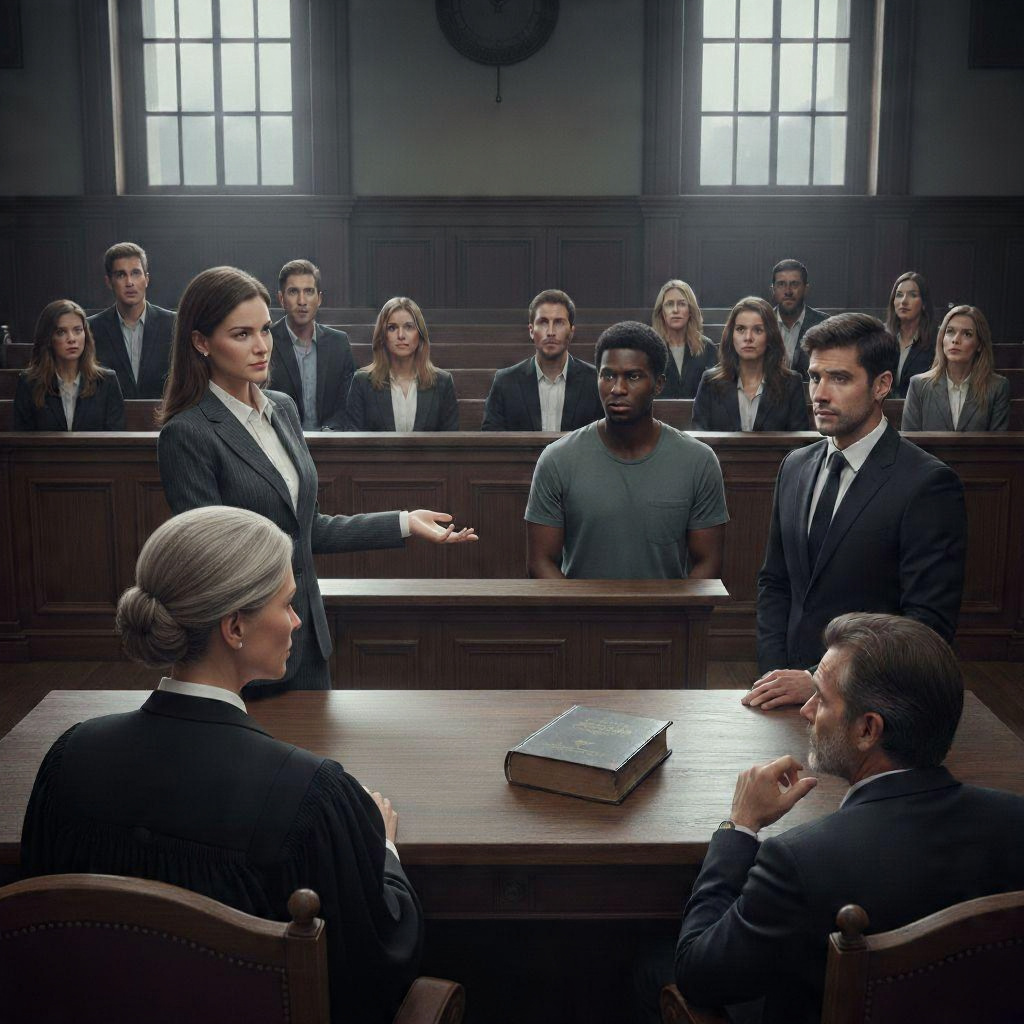 Pouco antes das 9h, diante dos quase imperceptíveis gatos-pingados na arquibancada, lá estavam a juíza, o promotor, a advogada da defesa, os jurados e a única testemunha. Pois é, apenas uma mísera pessoa para inquerir naquela manhã fria de agosto. A juíza. que até aquele momento estava convencida da culpa do réu, temeu por este não ter uma defesa condizente com a lei. Tanto é que chamou a advogada e o promotor para perto de sua mesa.