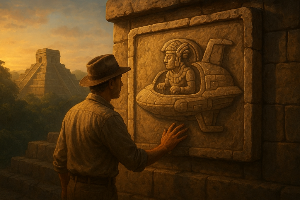 Os maias, por sua vez, desenharam em pedra figuras que lembram astronautas. Seria tudo coincidência — ou fragmentos de uma memória comum?