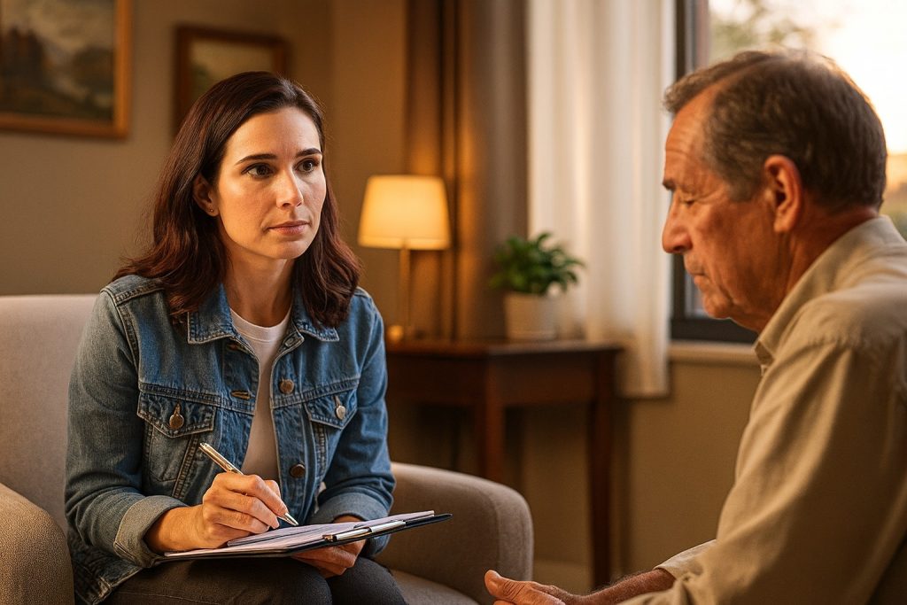 O espaço era um consultório modesto, quadros de paisagens tranquilas enfeitavam as paredes. A luz suave que vinha pela janela, pouco antes do pôr do sol, iluminava o rosto de sua terapeuta, Laura.