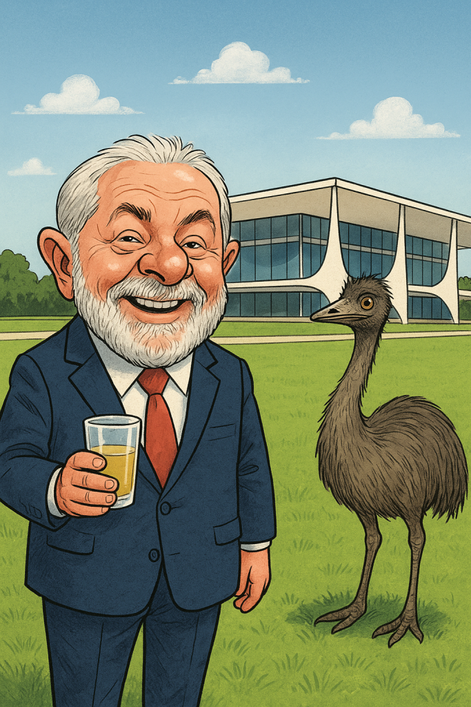 – “Claro que não, meu bem. Mandei o ajudante de ordens provar antes. E são emas, não avestruzes. São tradicionais nos jardins do Alvorada, você já morou aqui.”