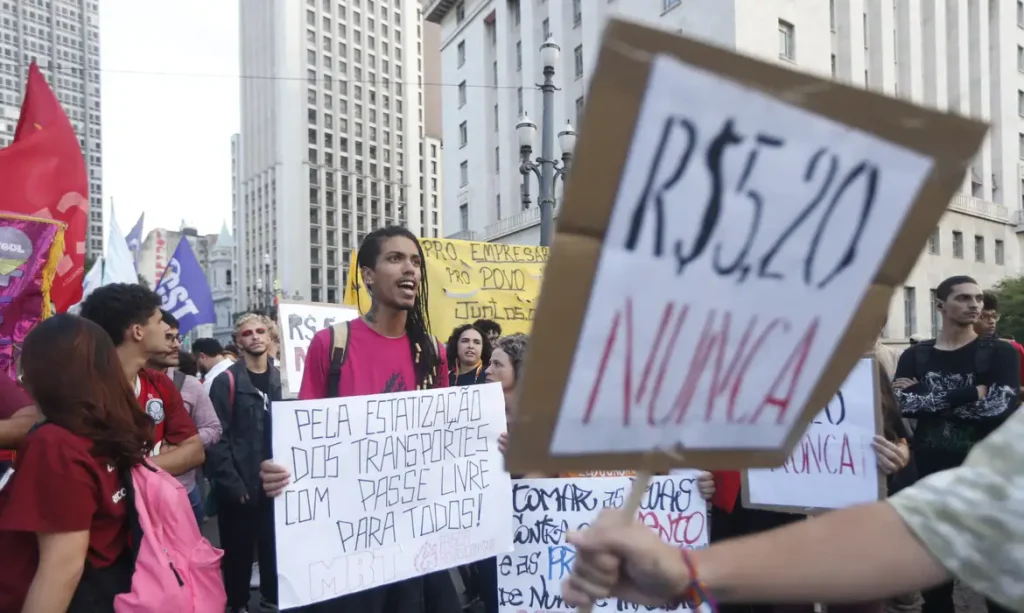 No quarto dia após o aumento das passagens municipais de transporte público na cidade de São Paulo, de R$ 4,40 para R$ 5,00, e das passagens do transporte sobre trilhos de R$5,00 para R$5,20, algumas centenas de pessoas caminharam em protesto pelo centro da capital.