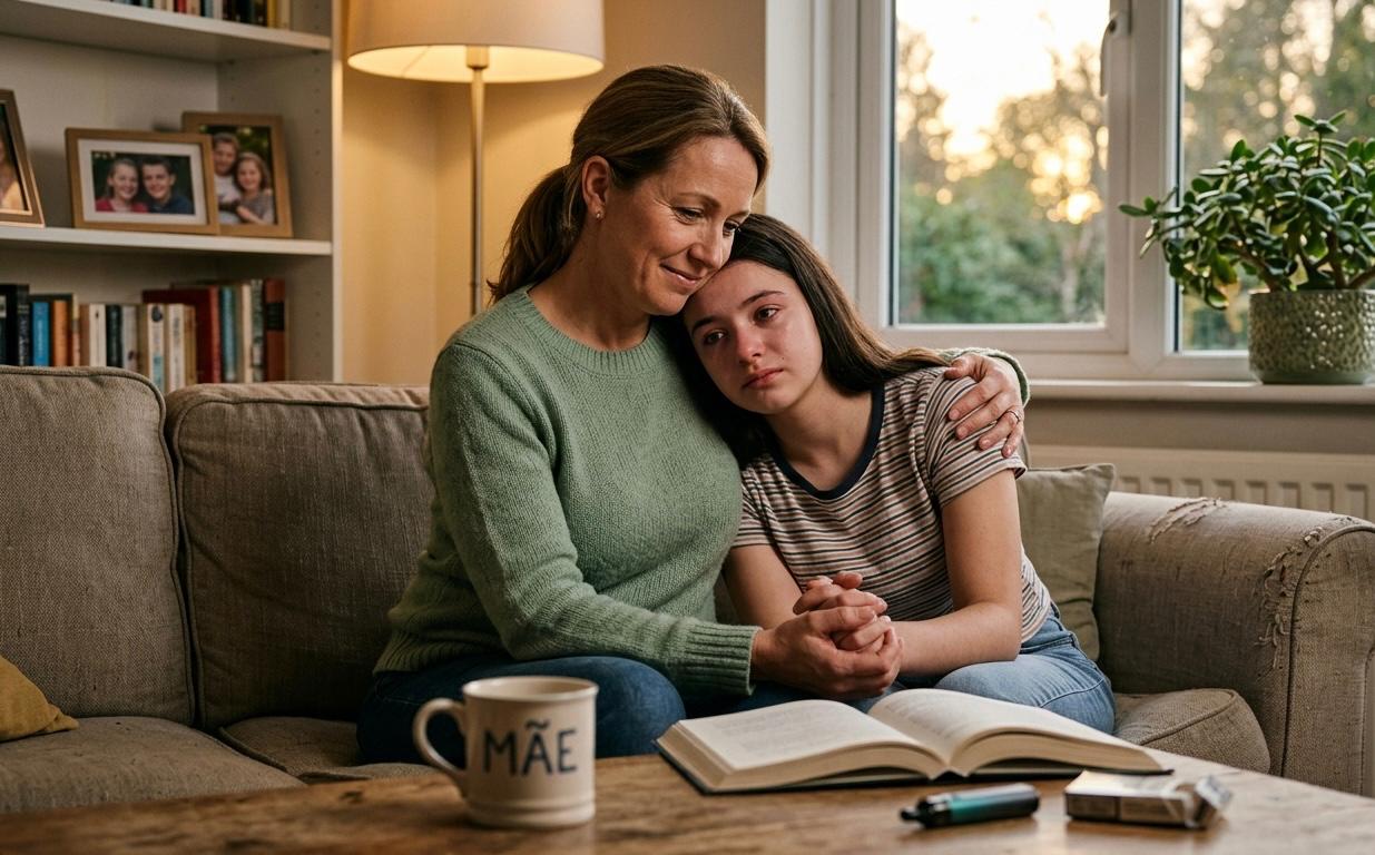 A solução? Bem, não existe nenhuma fórmula mágica que possa resolver esse impasse. Infelizmente os filhos não chegam a esse plano com um manual de instruções, que possamos usar como parâmetro para educá-los. O que podemos fazer é mostrar-lhes que, a despeito de qualquer coisa, estamos sempre ao seu lado, prontas para oferecer-lhe colo quando necessitarem… e sempre dispostas a ouvi-los e procurar ajuda-los naquilo que necessitem. Pois essa fase é quando nossos filhos mais precisam de nossa paciência… precisam que lhes dediquemos todo Amor que guardamos em nosso coração. Então, mesmo que a situação lhe pareça caótica, nunca deixe de abraçar e beijar seu filho, sua filha… e lhe dizer o quanto é importante para sua vida… o quanto você os ama…