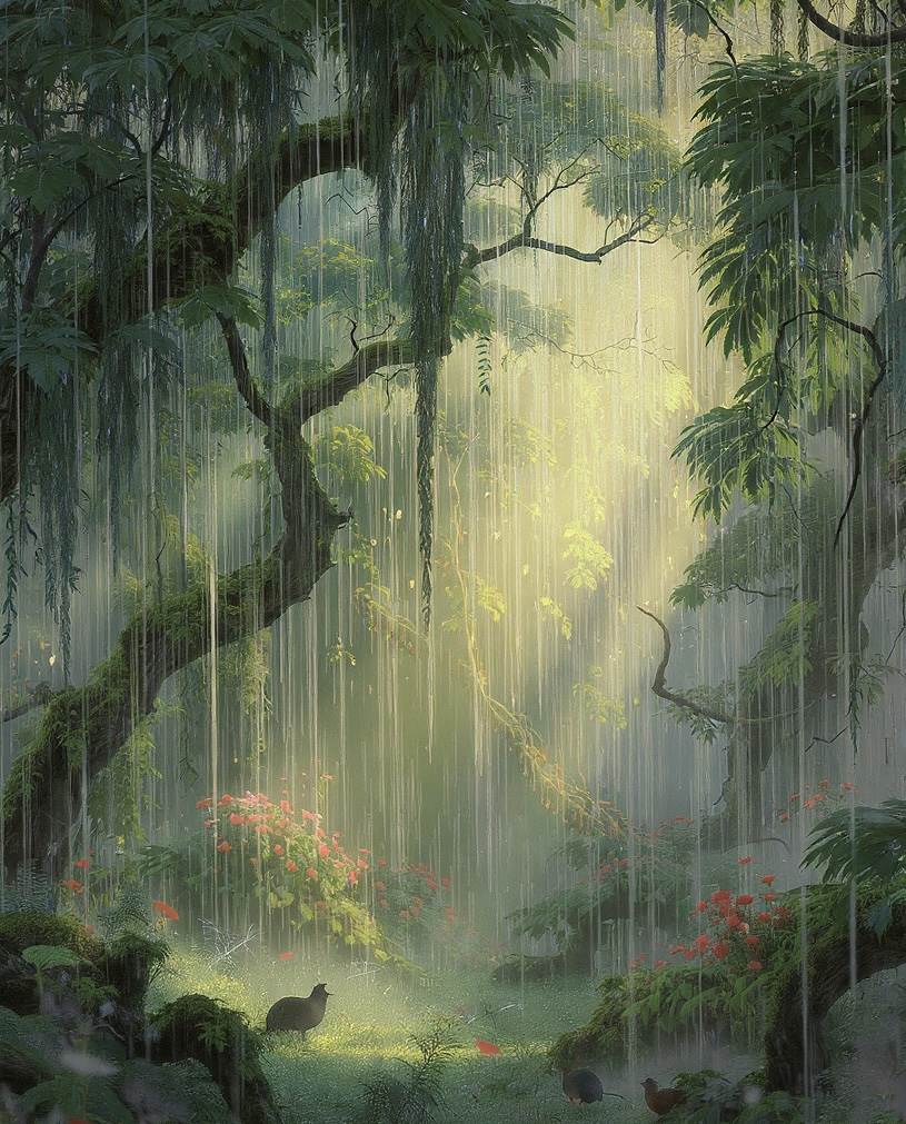 Depois de alguns dias de seca, a chuva voltou a cair. Mansa, tranquila. A vida renascendo no ar de alegria de cada flor, cada árvore banhada pelas gotas de água que tão graciosamente as nuvens despejaram sobre o solo. A felicidade estampada em cada folha, em cada pétala de flor, é um espetáculo lindo, comparável ao sorriso de uma criança quando no colo de seus pais…