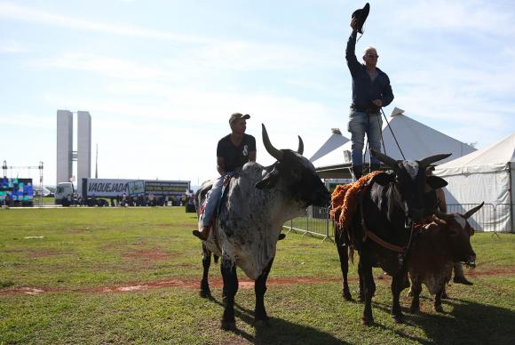 Com faixas e um carro de som posicionado próximo ao Congresso Nacional, vaqueiros e empresários do setor negam que a prática signifique maus tratos aos animais e afirmam que, além de elemento da cultural, a atividade é fonte de geração de emprego e renda.