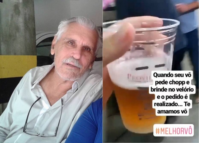 Chope e música completaram a celebração da vida de João, relata a neta Brenna Ferrari. “Meu tio (genro do meu avô) lembrou de um acordo que eles tinham feito sobre o velório deles… Que o primeiro que morresse ia fazer um velório alegre, pra lembrar dos momentos bons e dos brindes com os amigos, que era o que ele gostava de fazer sempre nos momentos de tristeza”, conta.
