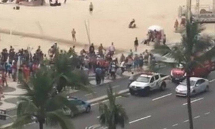 Policiais do 19º Batalhão da Polícia Militar, de Copacabana, foram acionados e tentaram fazer um cerco para prender os dois suspeitos, mas eles conseguiram fugir. Na fuga, um dos homens deixou cair na areia uma mochila com documentos, cangas e a chave de um carro.