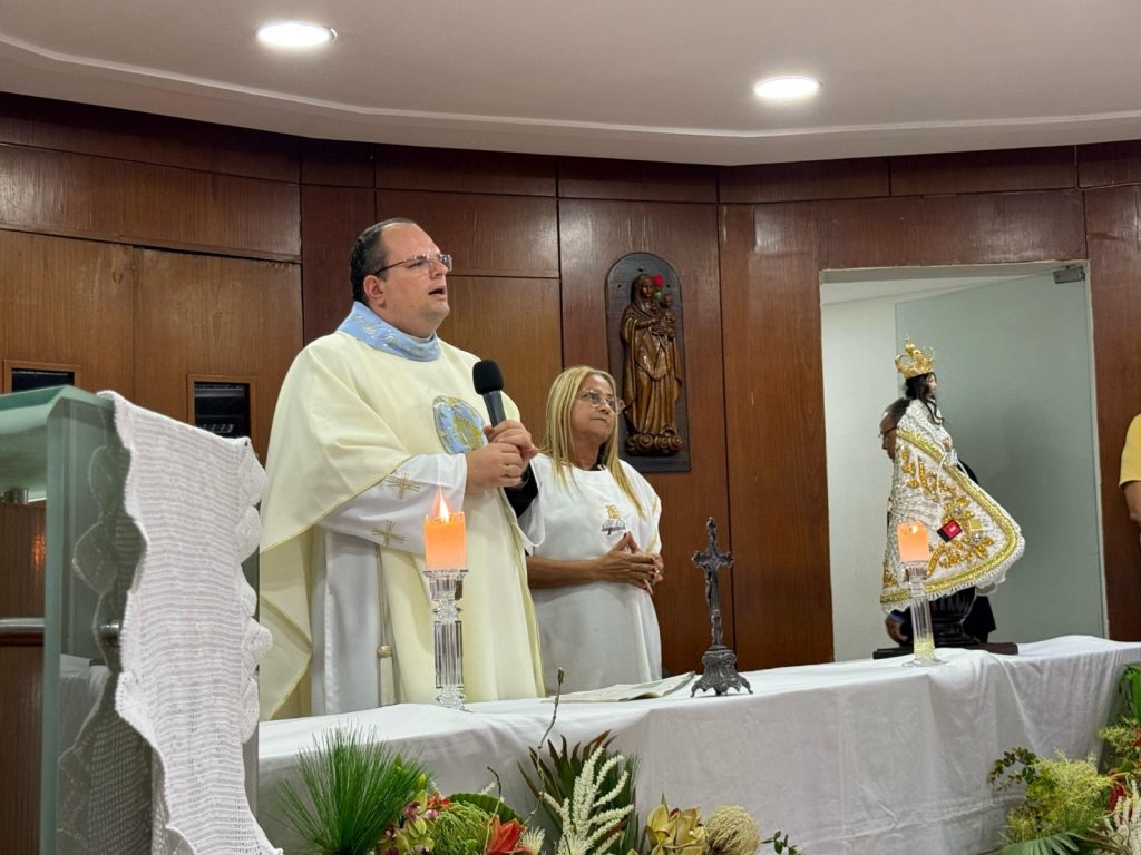 Com o ambiente lotado por vereadores, servidores e fiéis da comunidade, a Câmara Municipal de João Pessoa recebeu nesta quinta-feira (24), a imagem peregrina da padroeira da Paraíba e da capital, Nossa Senhora das Neves. Na oportunidade, o Padre Allan Karlos, pároco da Catedral Basílica de Nossa Senhora das Neves, celebrou uma missa no Plenário Senador Humberto Lucena. O evento integra as festividades da celebração dos 440 de história, fé e tradição de João Pessoa.