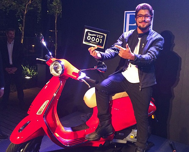 As vendas começam pela internet apenas para a série especial. O primeiro exemplar foi presenteado para o ator Caio Castro, que será o “embaixador” da marca no Brasil. Ele entrou no palco conduzindo o scooter.