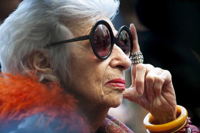 Exagerada, maximalista, irônica e debochada, Iris Apfel parece estar sempre vestida para lacrar! Seu estilo extraordinariamente enfeitado está tão em linha com a era das redes sociais, que, aos 95 aos, ela tem mais de 700 mil seguidores no Instagram – considerado a grande vitrine virtual da atualidade. E como ela é fotogênica! Seus óculos redondos gigantescos, o cabelo branco em contraste com o batom vermelho, as joias étnicas de jade, baquelite e turquesa, tudo nela, junto e misturado, imprime bem. Iris é pop, é over, mas tem um olhar harmônico para unir elementos diferentes e impactantes ao mesmo tempo.