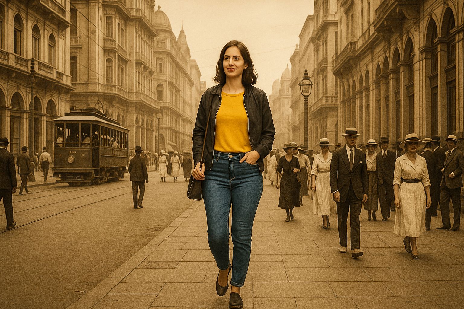 Acho que eu não gostaria de levar nada daqui pra uma época passada. Nenhum manual, nenhuma tecnologia, nenhuma prova do futuro. Talvez preferisse apenas viver lá por um tempo, observar, experimentar a vida como ela era: sem tantas urgências, sem tantas telas, sem tanta informação. E, quem sabe, voltar ao presente trazendo alguma coisa de lá. Não um objeto, mas um costume, um modo de viver, alguma simplicidade que o tempo tratou de apagar.