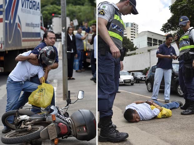 Um motociclista imobilizou durante meia-hora um homem que chegou a roubar sua moto e andar alguns metros no Setor Comercial Sul, nesta terça-feira (18). O dono da motocicleta estava em um shopping na região quando viu o suspeito tentando levar o veículo. A vítima bateu no capacete do homem, que estava parado no semáforo, e o segurou até a polícia chegar.