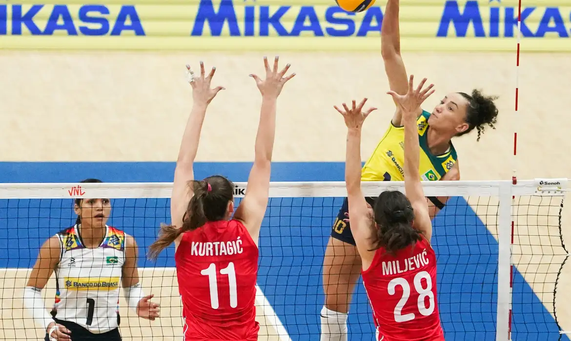 A seleção brasileira de vôlei encerrou a disputa da primeira semana da Liga das Nações Feminina (LNF) com 100% de aproveitamento. Isto porque derrotou a Sérvia por 3 sets a 0 (parciais de 25/15, 25/19 e 25/19), neste domingo no Ginásio do Maracanãzinho, no Rio de Janeiro.