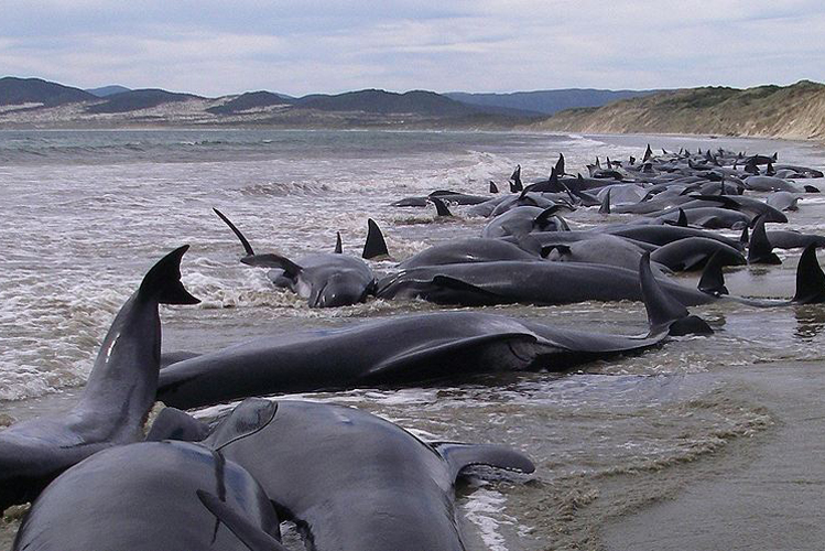 Dezenas deles ficam encalhados anualmente nessa zona da Nova Zelândia, cujas águas fazem parte da rota que esta espécie faz quando abandona a Antártida e quando retorna às águas antárticas em setembro. A baleia piloto é um exemplar de corpo robusto que pode alcançar entre seis e sete metros de comprimento.